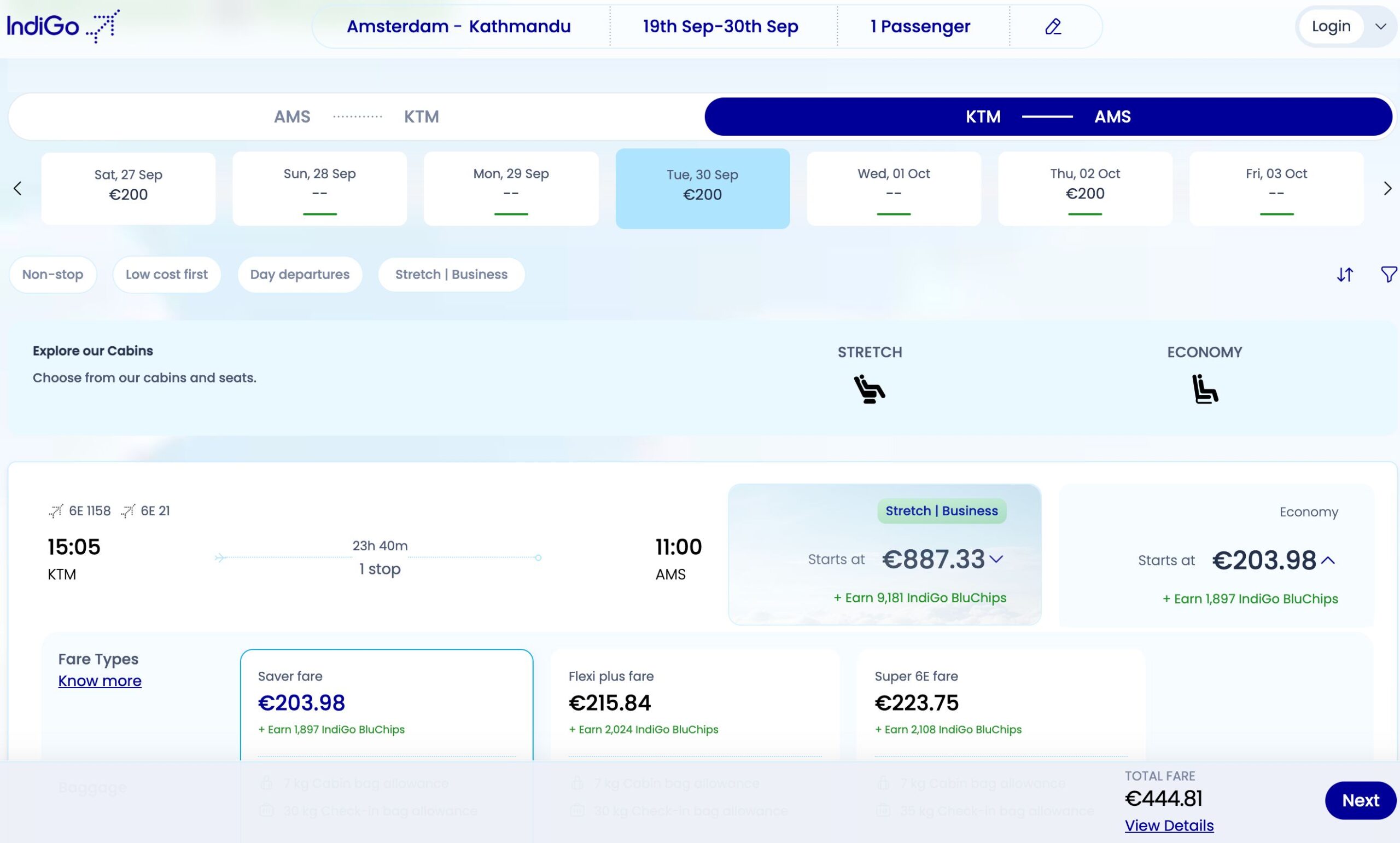 В авіакомпанії IndiGo з’явилися недорогі квитки з Нідерландів в Непал. Найнижчі ціни на рейси є на осінь 2025 року. Ціни на квитки стартують від €445 у два боки