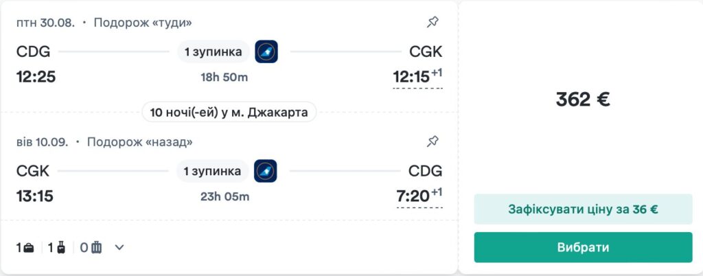 Авіаквитки Париж – Джакарта від €362 у два боки
