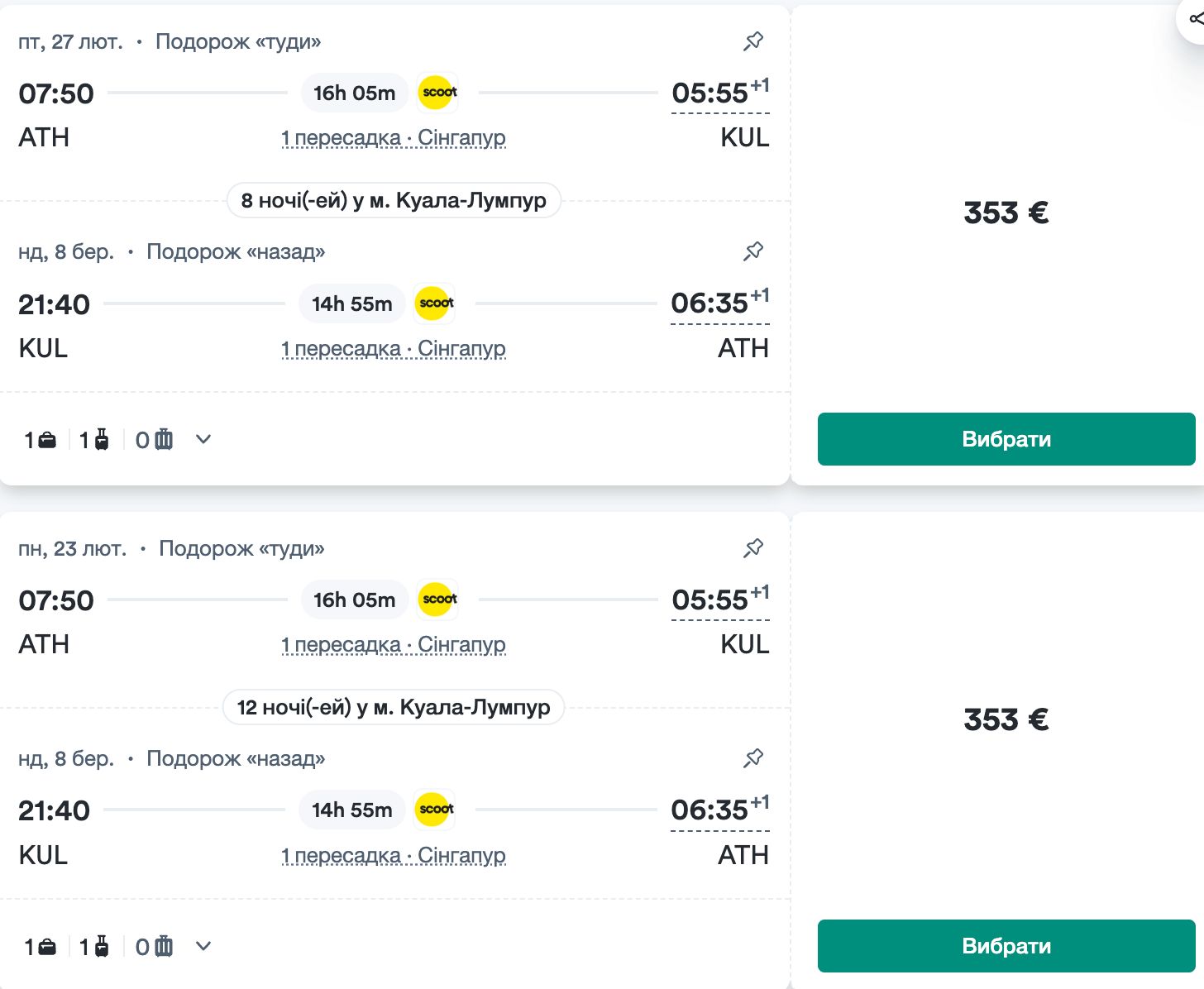 Авіаквитки можна шукати на сайті tickets.lowcostavia.com.ua, чи kiwi.com або на офіційному сайті Scoot.