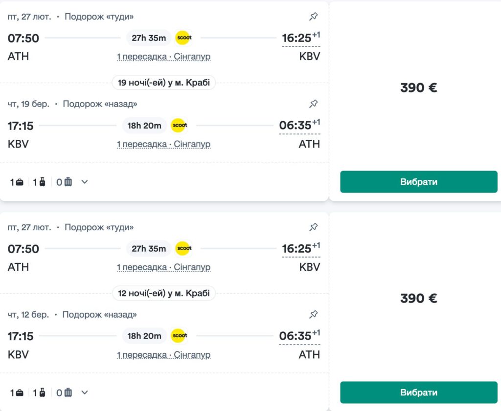 Авіаквитки Афіни – Крабі від €390 у два боки