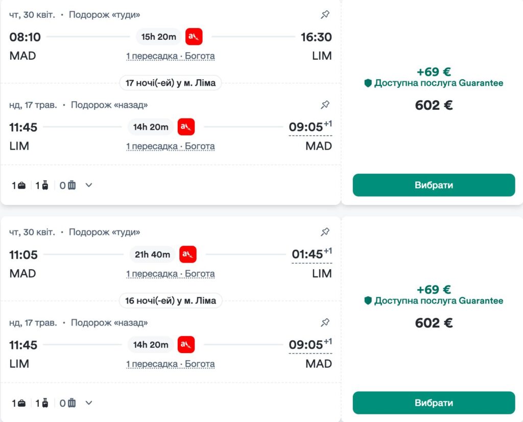 Авіаквитки 🇪🇸Мадрид – 🇵🇪Ліма від €602 у два боки