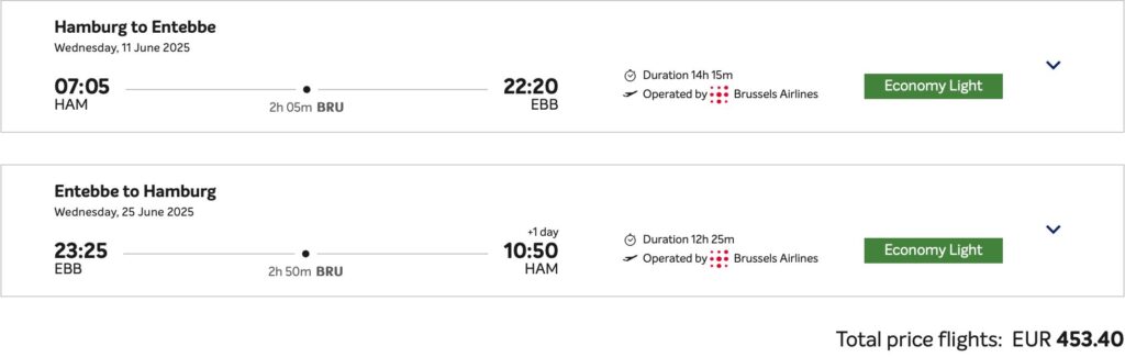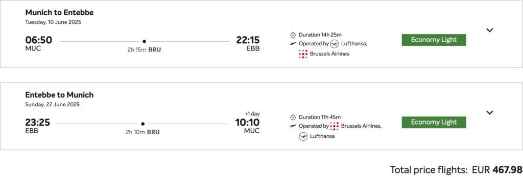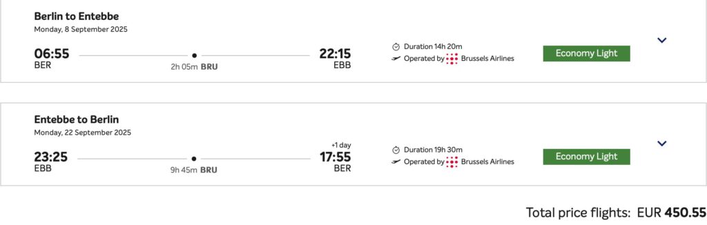 В авіакомпаній Ethiopian Airlines та Brussels Airlines  з’явилися недорогі авіаквитки на рейси з Німеччини та Норвегії в Уганду та Руанду. Пропозиції є на рейси з Гамбурга, Мюнхена, Берліна, Франкфурта та Осло в Ентеббе та Кіґалі.