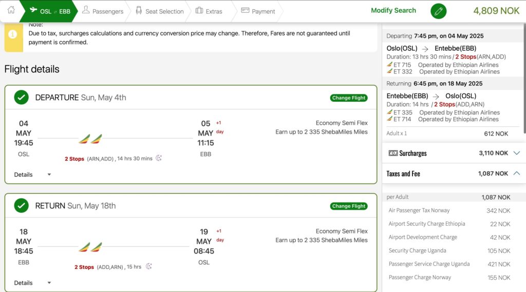 Авіаквитки Осло – Ентеббе від €423 у два боки