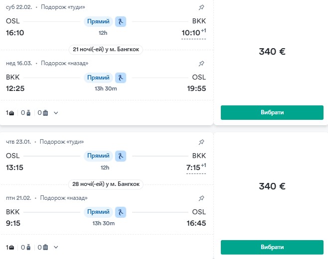 - Осло – Бангкок від €340 у два боки