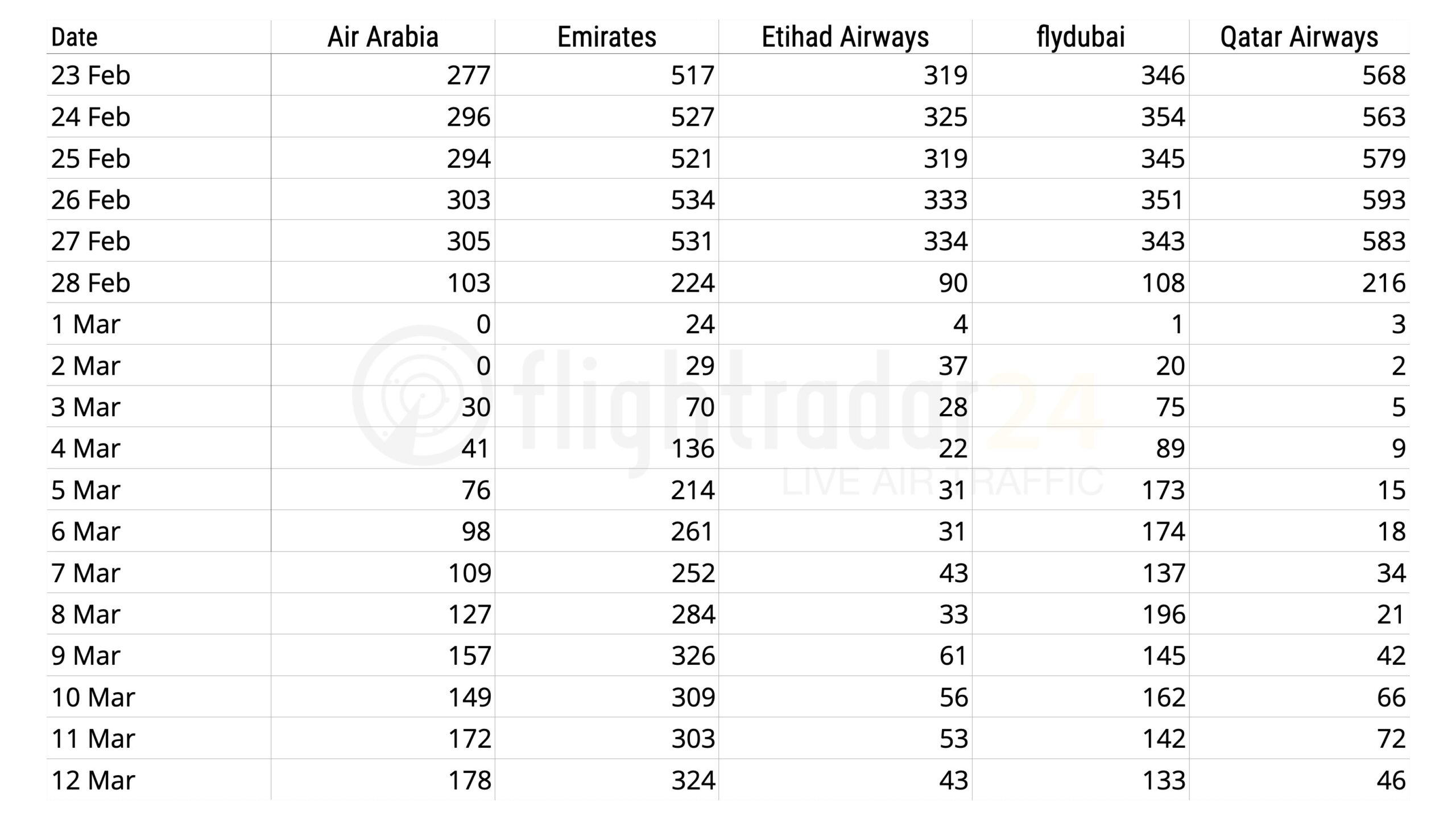 - @airarabiagroup – авіакомпанія почала виконувати обмежену кількість евакуаційних рейсів, а регулярні рейси схоже скасовані до 31 березня.