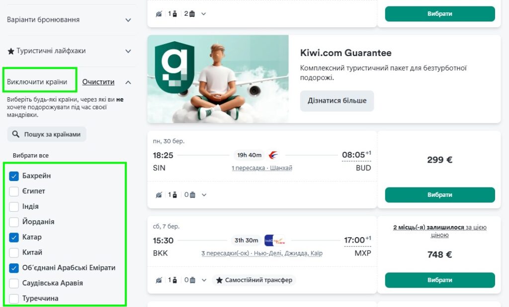 З пошуку виключено перельоти через ОАЕ, Катар, Бахрейн та Кувейт.