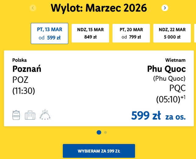 Хороший варіант також це скористатися чартерами Rainbow Tours з Польщі у Таїланд та В’єтнам. Зараз є квитки з Познані та Катовіце на безвізовий острів Фукуок (В’єтнам) 13, 15, 20 березня від €257 (1100 pln) в один бік з багажем. Детальніше про ці рейси у статті.