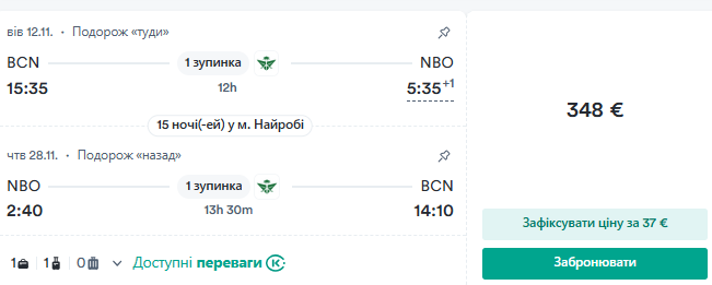 Авіаквитки Барселона – Найробі від €354 у два боки