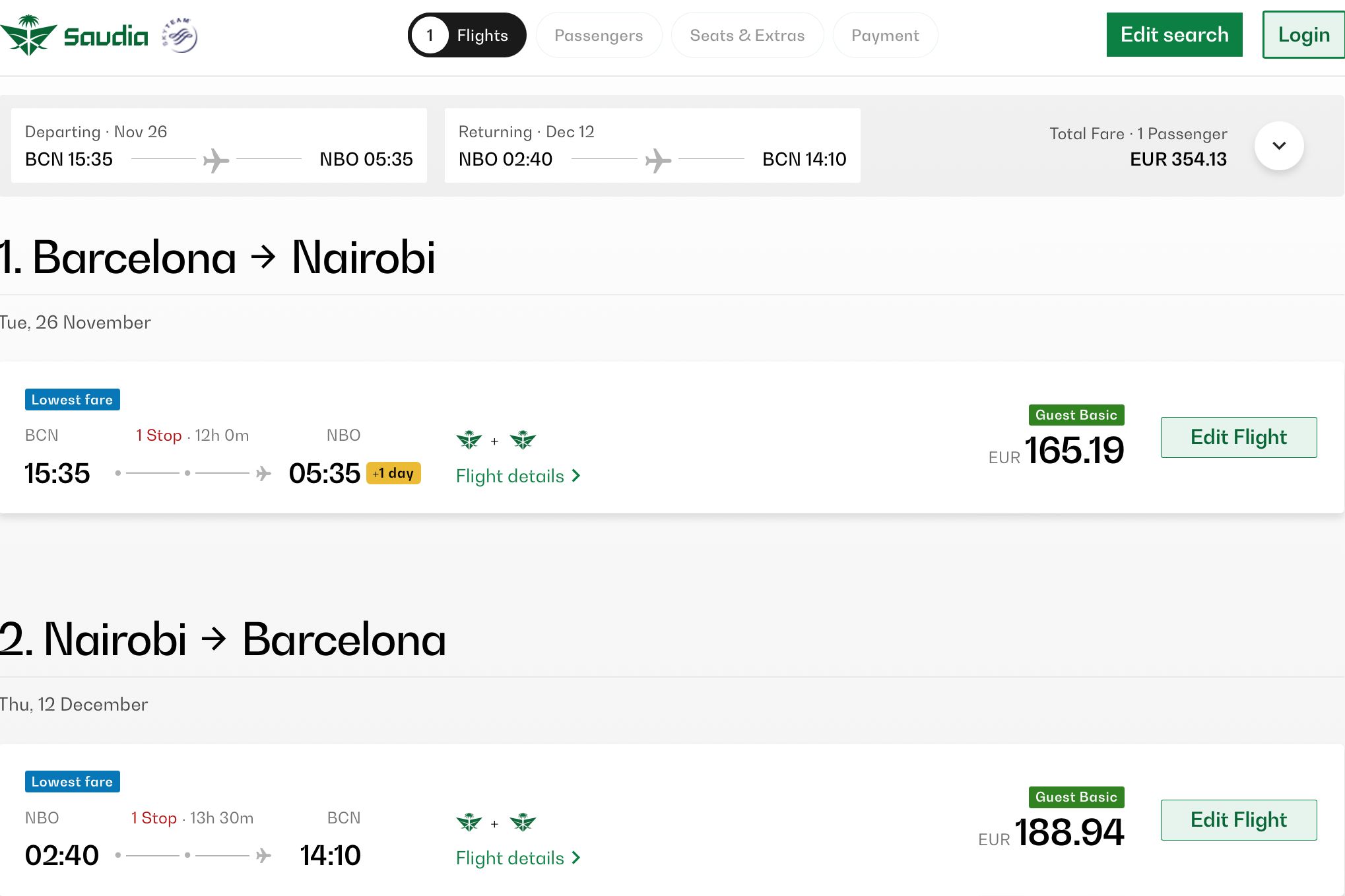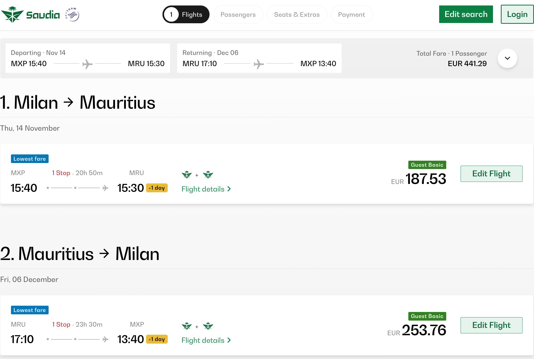В авіакомпанії Saudi Arabian Airlines з’явилися дешеві квитки на рейси з Італії та Іспанії в Африку, а саме – в Кенію та Маврикій. Дешеві авіаквитки є на кінець 2024 та на початок 2025 року.